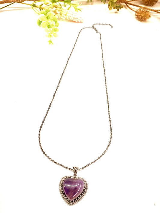 HEART VINTAGE ~ Collana con cuore pendente in pietra dura naturale ~ acciaio 316L ~