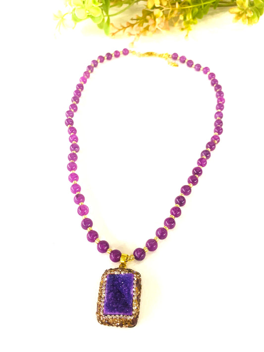 ARYA AMETISTA ~ COLLANA IN PIETRE DURE NATURALI con ciondolo BUDDHA miniatura