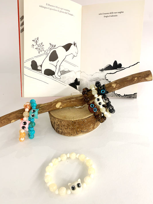 KITTEN Rainbow ~ bracciale con gattino e perle in resina, elasticizzato