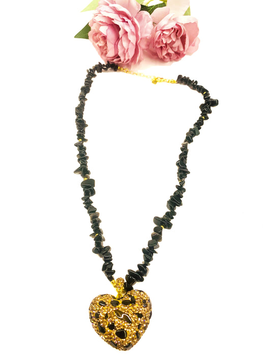 HEART VINTAGE ~ Collana con cuore pendente in pietra dura naturale ~ acciaio 316L ~