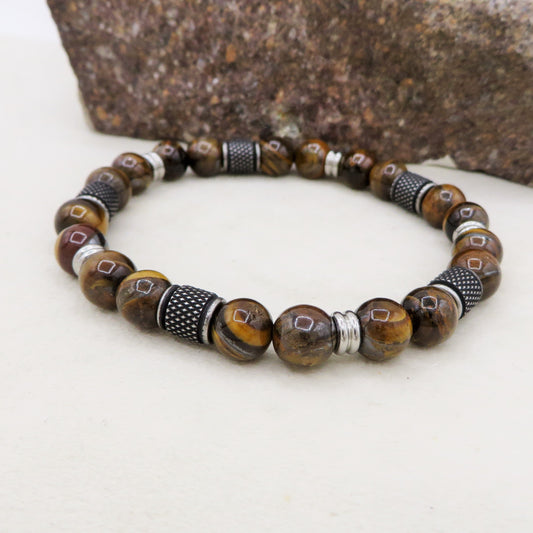Bracciale Drakpo TIGER EYE Naturale energia intensa e protettiva - UOMO - ACCIAIO inossidabile~