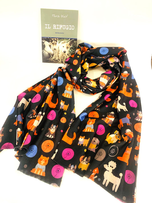 DOGGY SHAWL - Sciarpa 100% ~ Double face con cagnolini ~ tipo Pashmina
