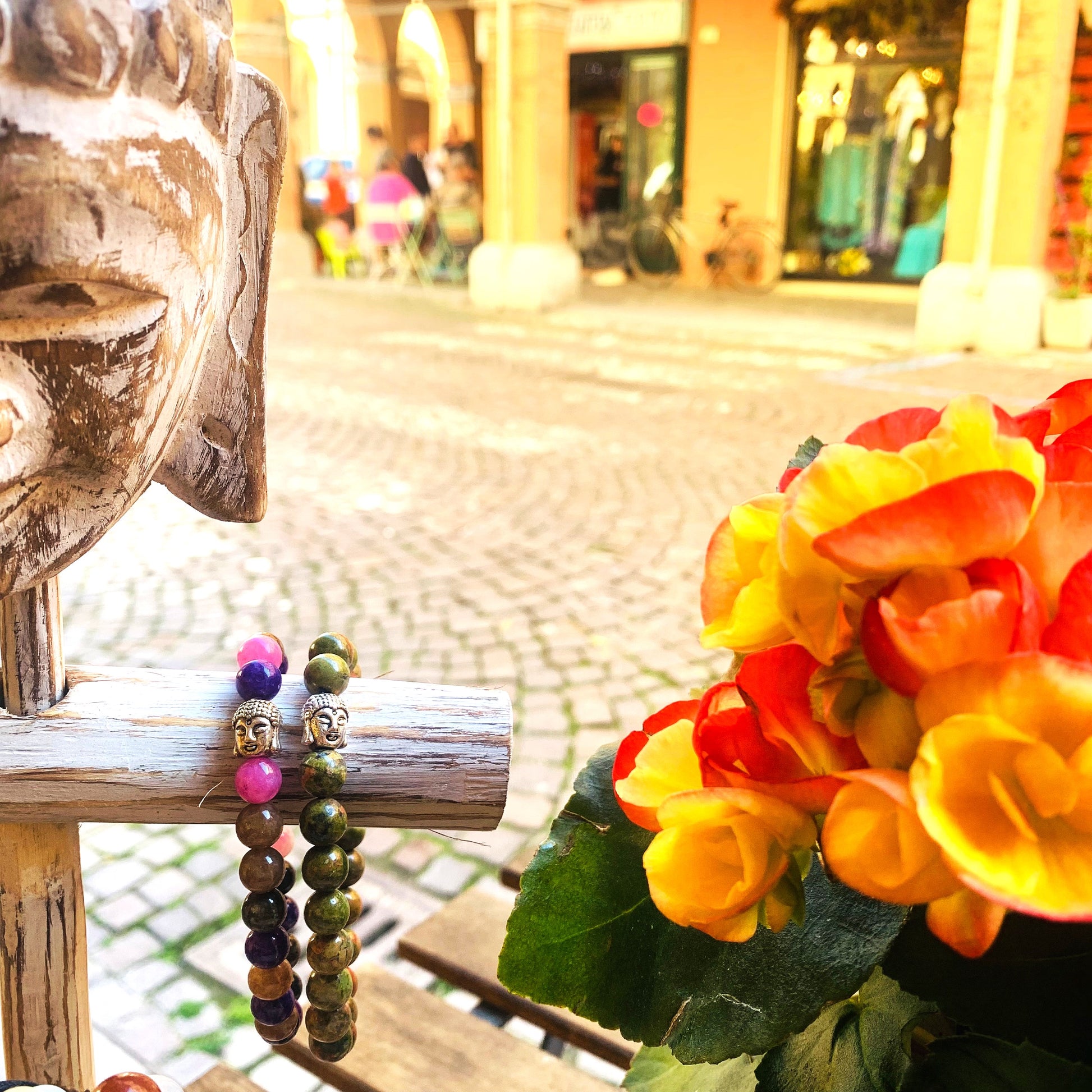 THAI BUDDHA ~ BRACCIALE ELASTICIZZATO IN PIETRA DURA NATURALE CON TESTA DI BUDDHA