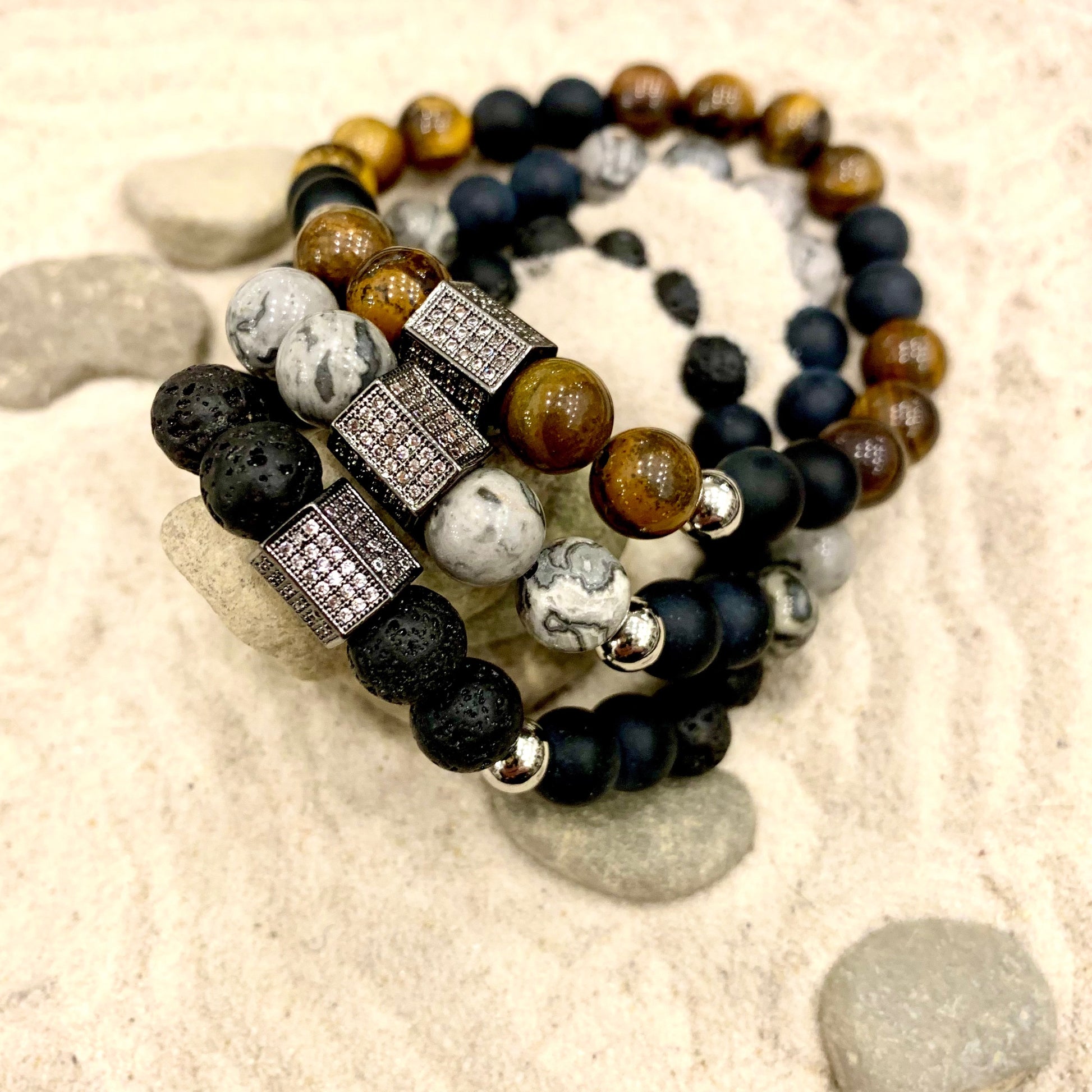 ~ Brown/nero- occhio di tigre, pietra l'avoca e ossidiana