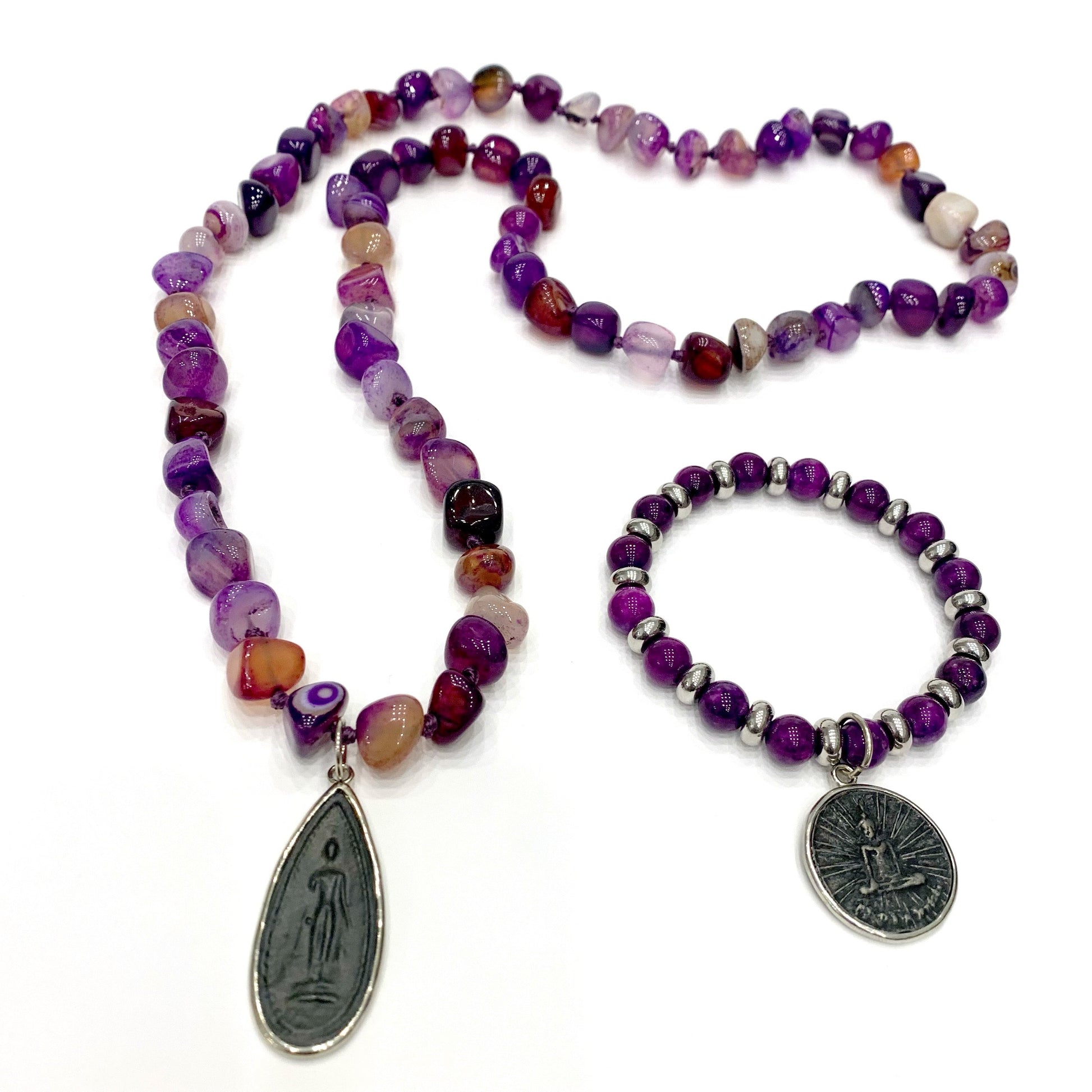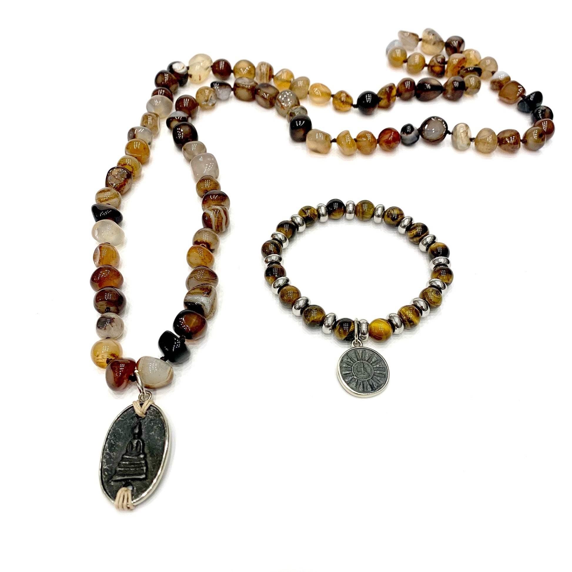 ARYA SODALITE ~BRACCIALE IN PIETRE DURE NATURALI e nodini ACCIAIO con ciondolo BUDDHA miniatura