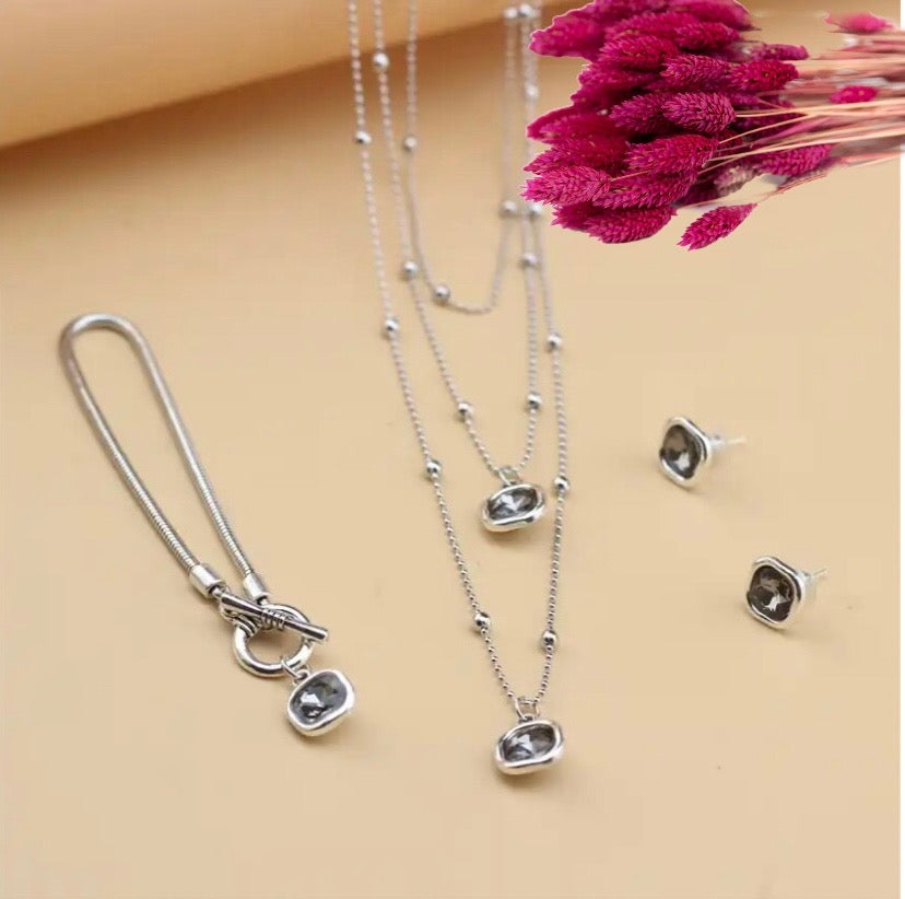 abbinati orecchìni a lobo e COLLANA TRIPLO GIRO charms