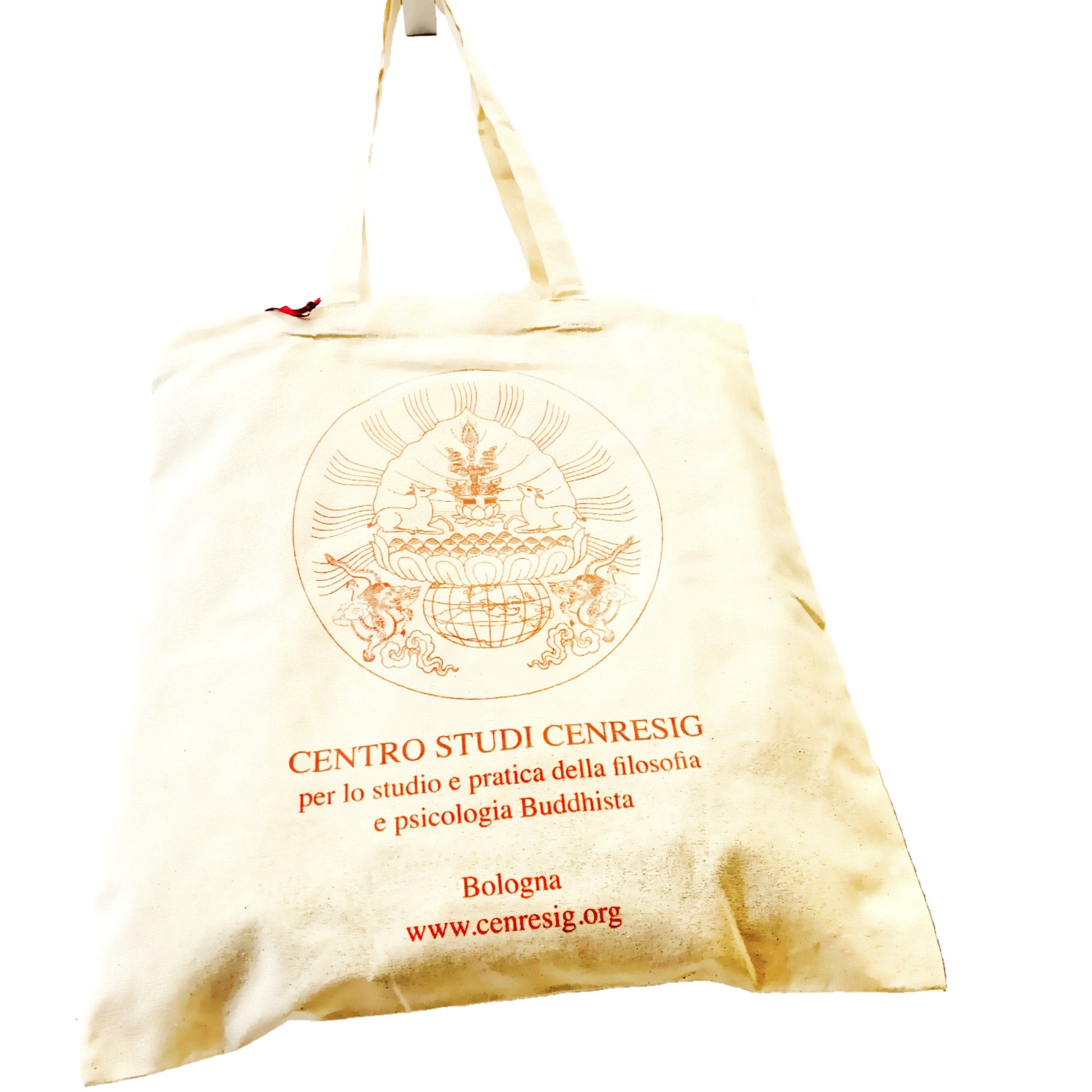 La shopping bag del Centro Studi Cenresig associato FMPT, per lo studio e pratica della filosofia e psicologia Buddhista.