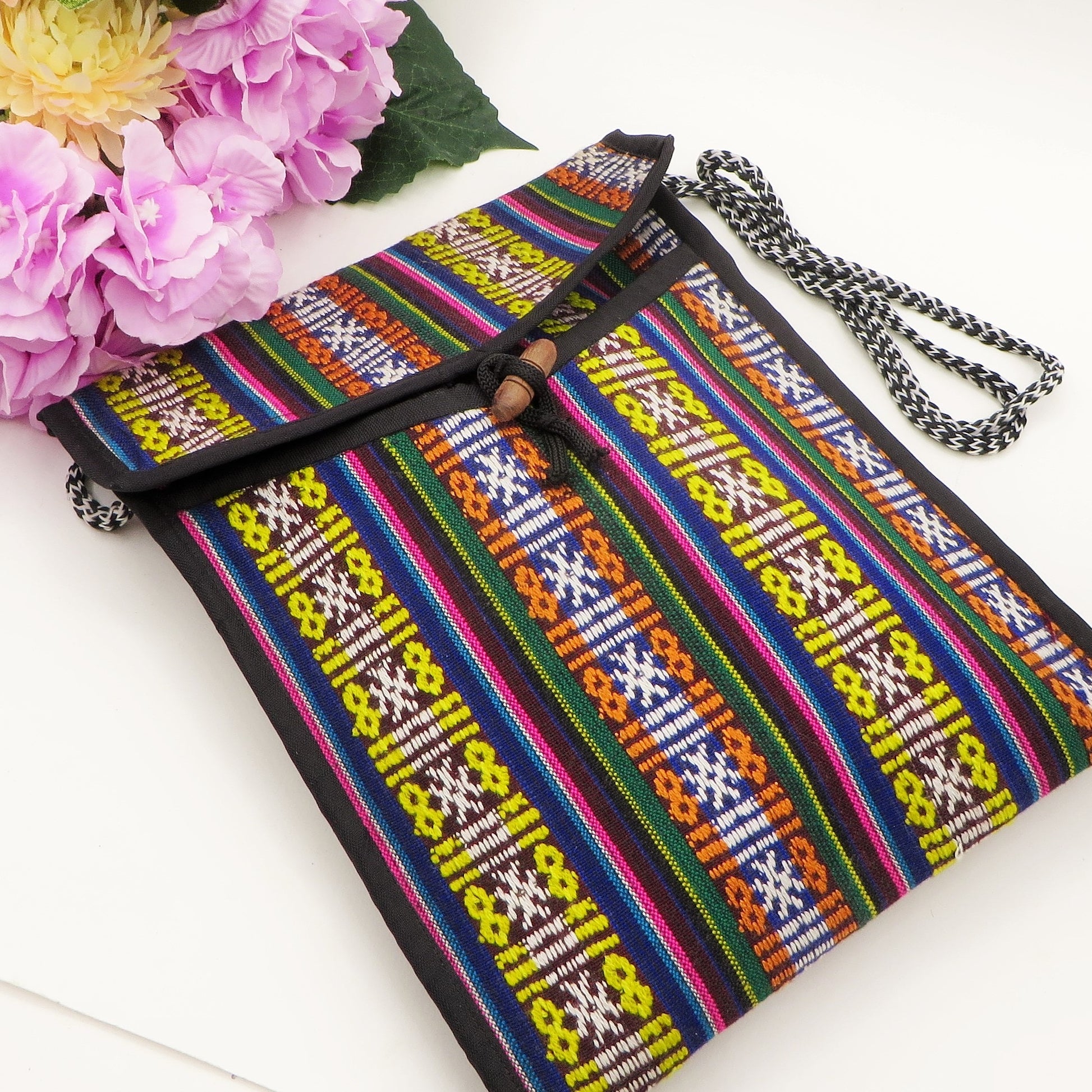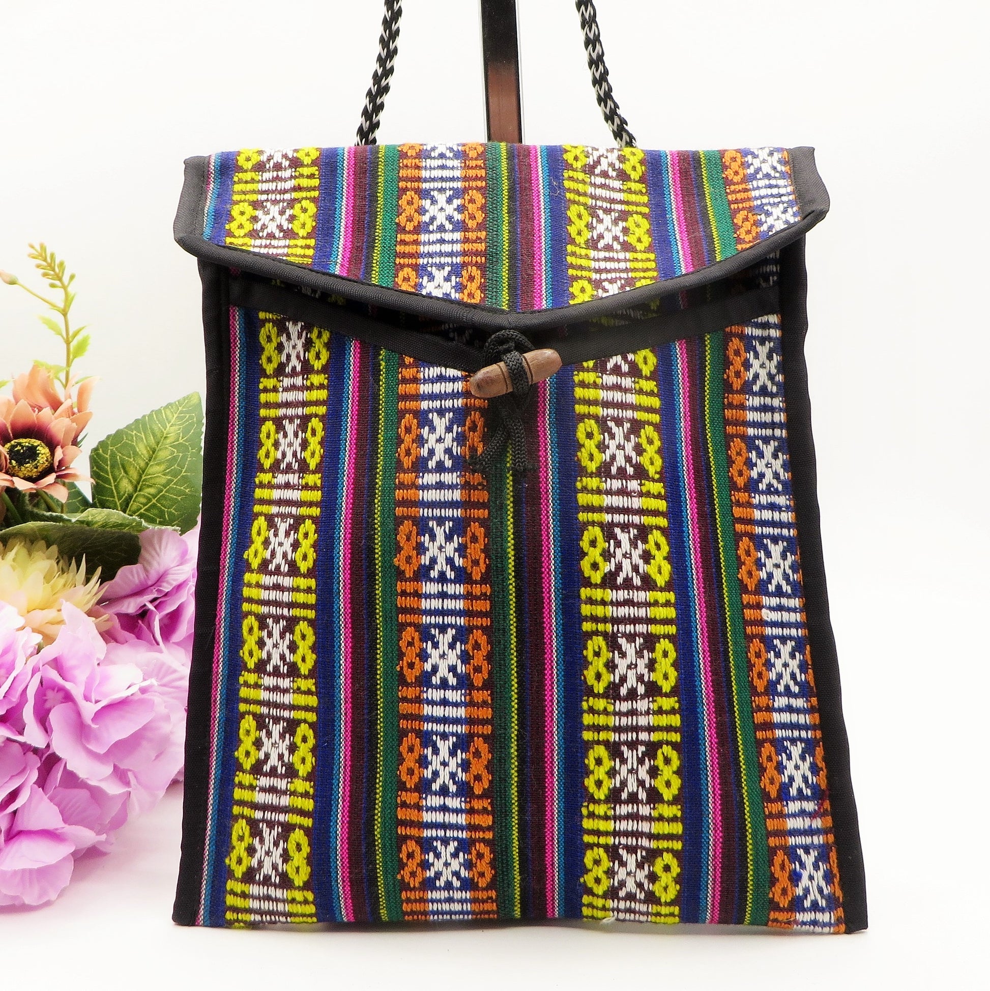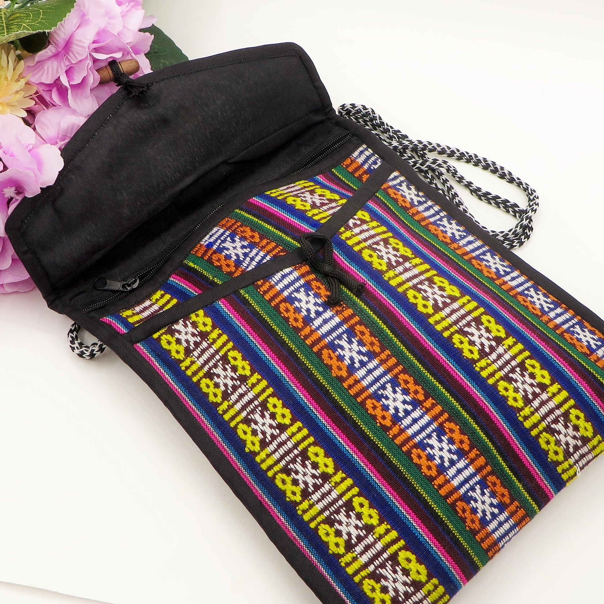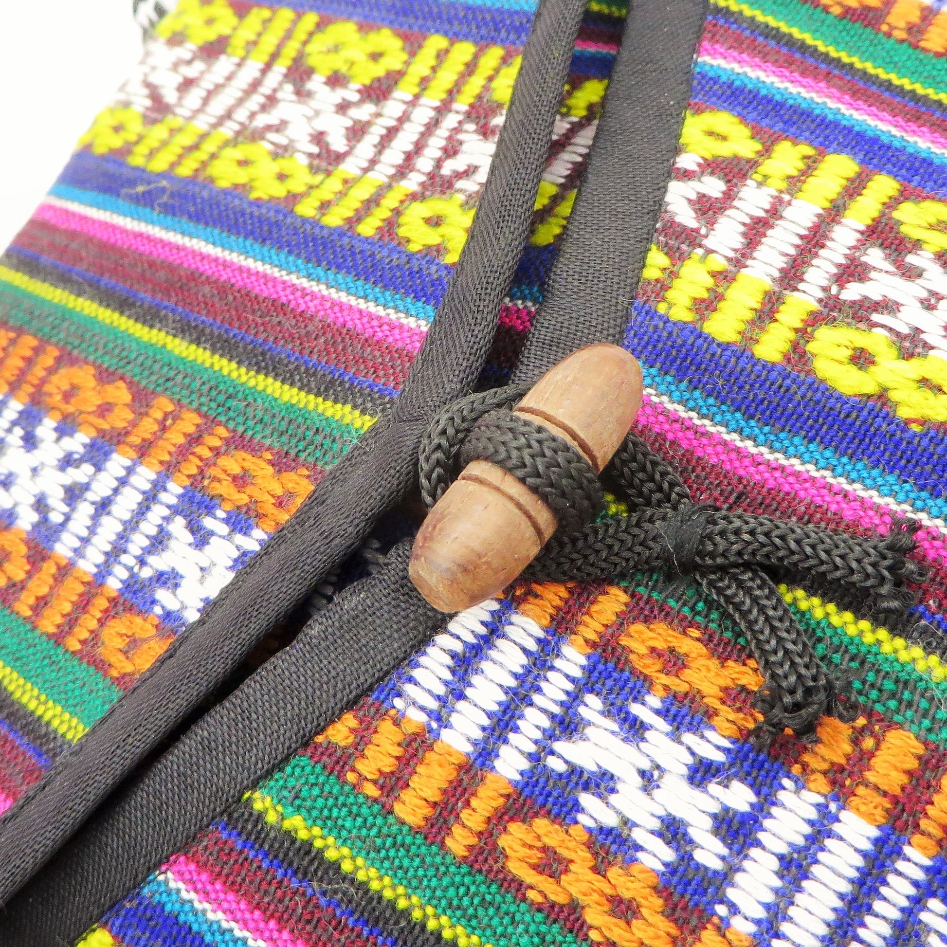 Bellissima tracollina in tessuto millerighe multicolor Tibetano Vintage, la fantasia tipica che contraddistingue questo popolo, gentile e compassionevole.