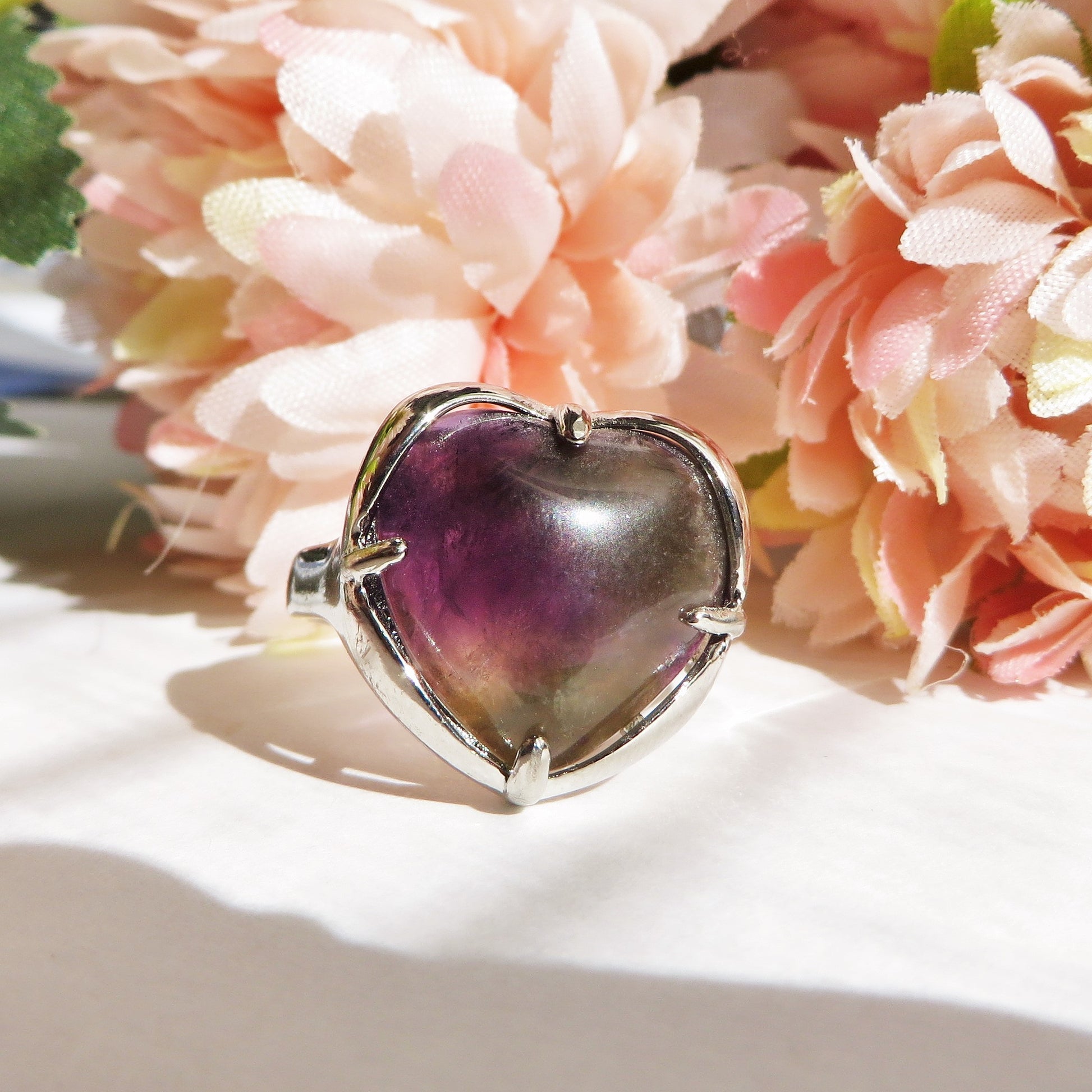 HIRDAYAM ~ Anello con pietre dure naturali~ Ametista~Ossidiana~Opale~Occhio di tigre~Quarzo Rosa