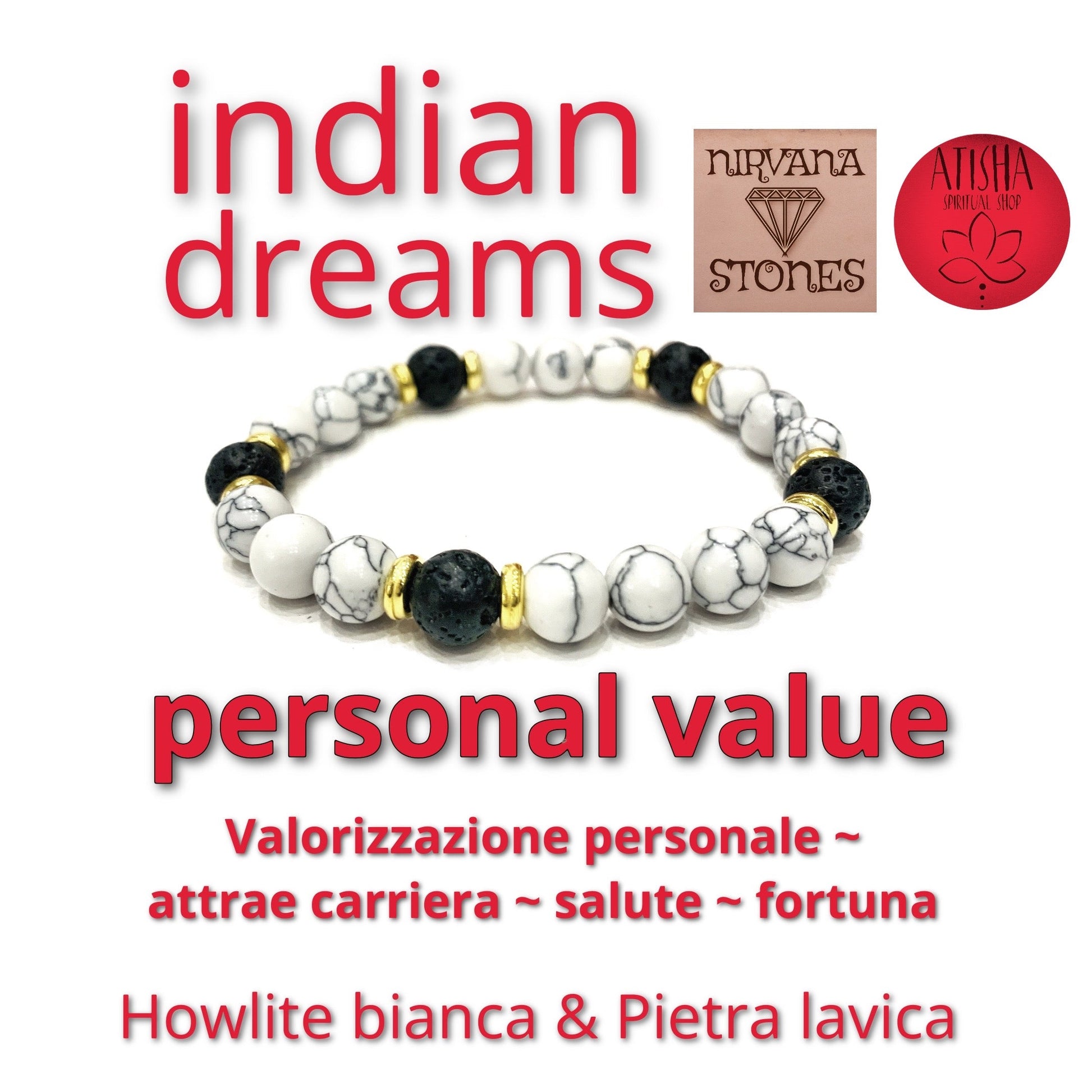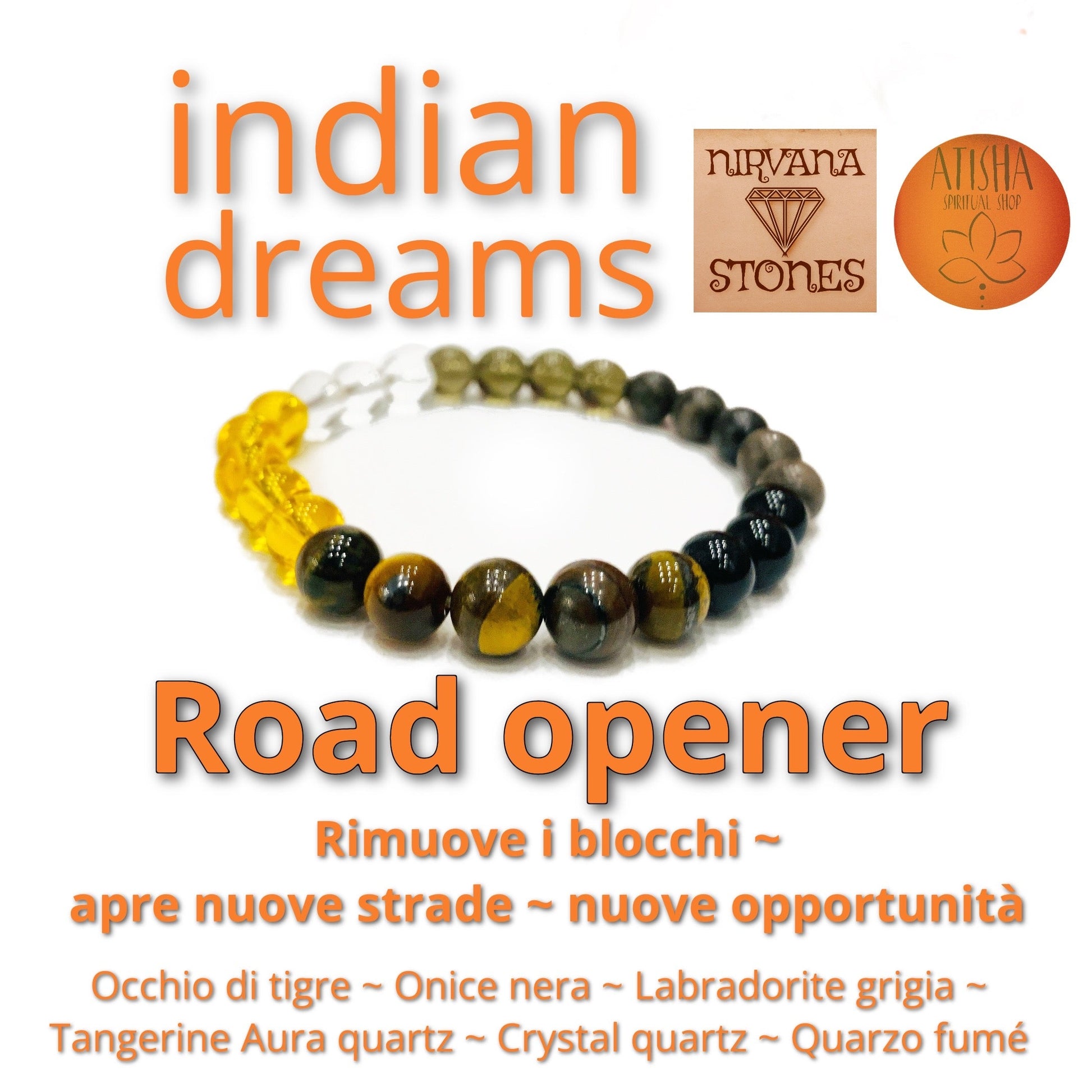 INDIAN DREAMS ROAD OPENER ~ BRACCIALE ~ ELASTICIZZATO IN PIETRA DURA NATURALE