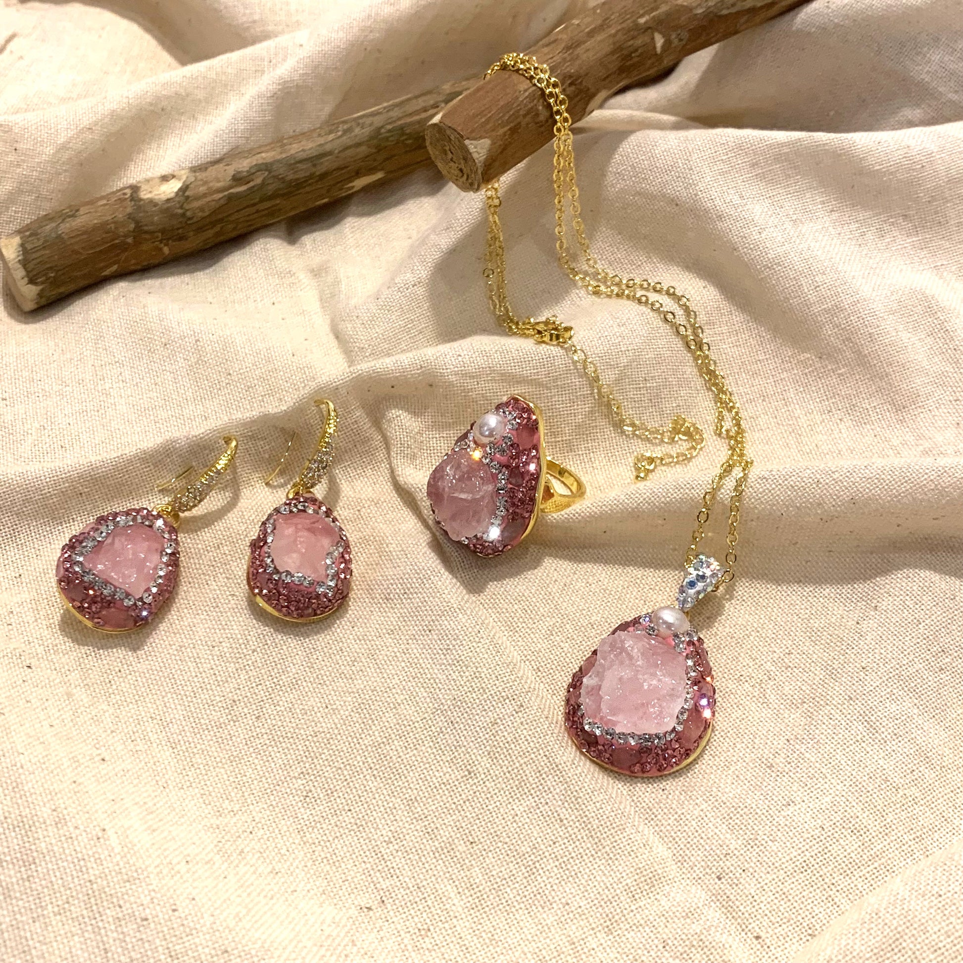 1 set ISANA DRUSA COLLANA ROSE QUARTZ