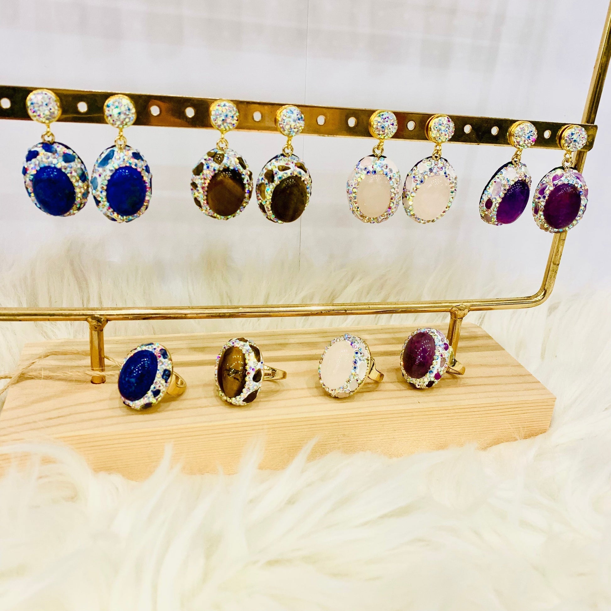 ISANA - ANELLO IN PIETRA DURA NATURALE e metallo ottone galvanizzato e rodiato oro
