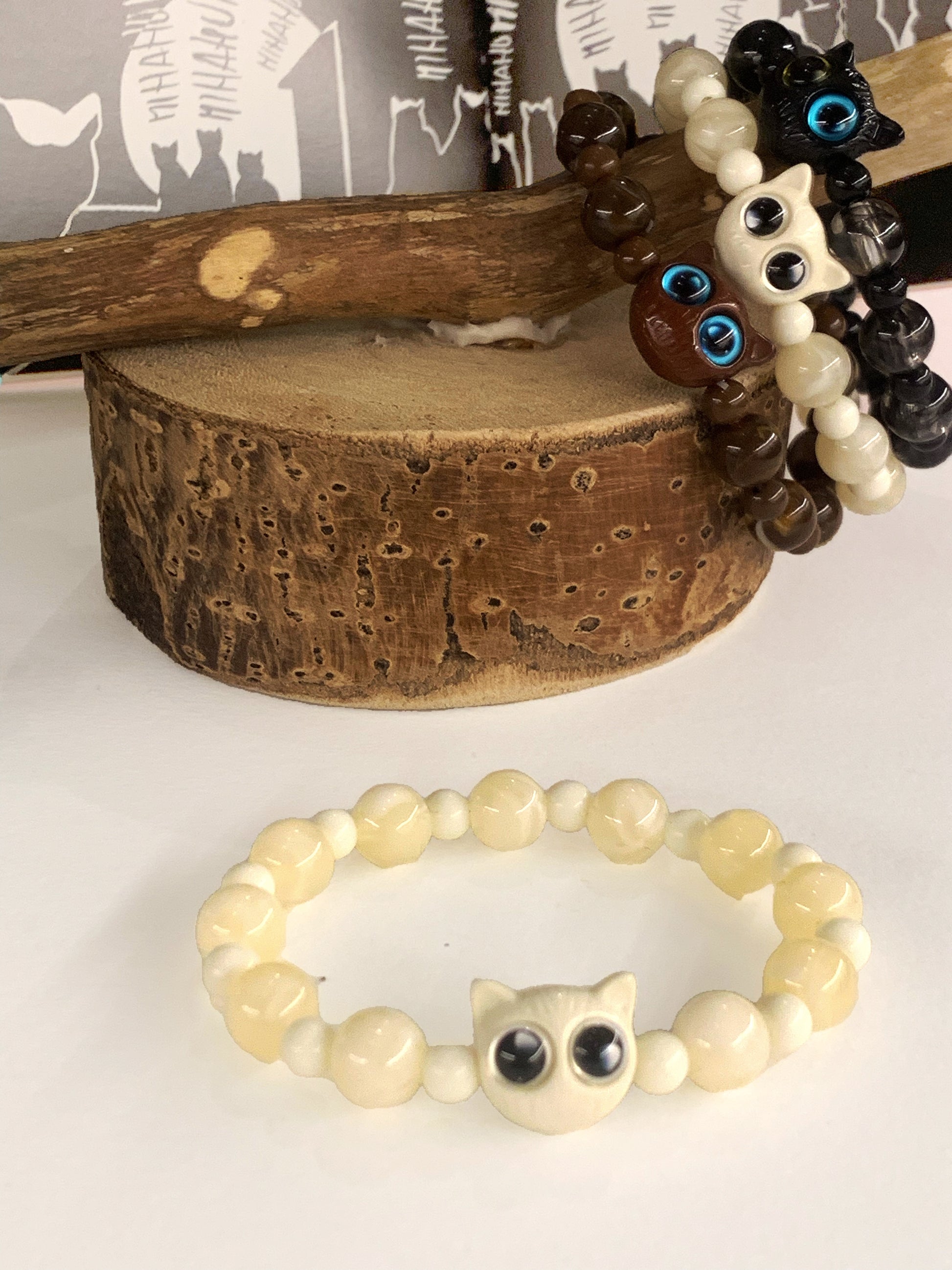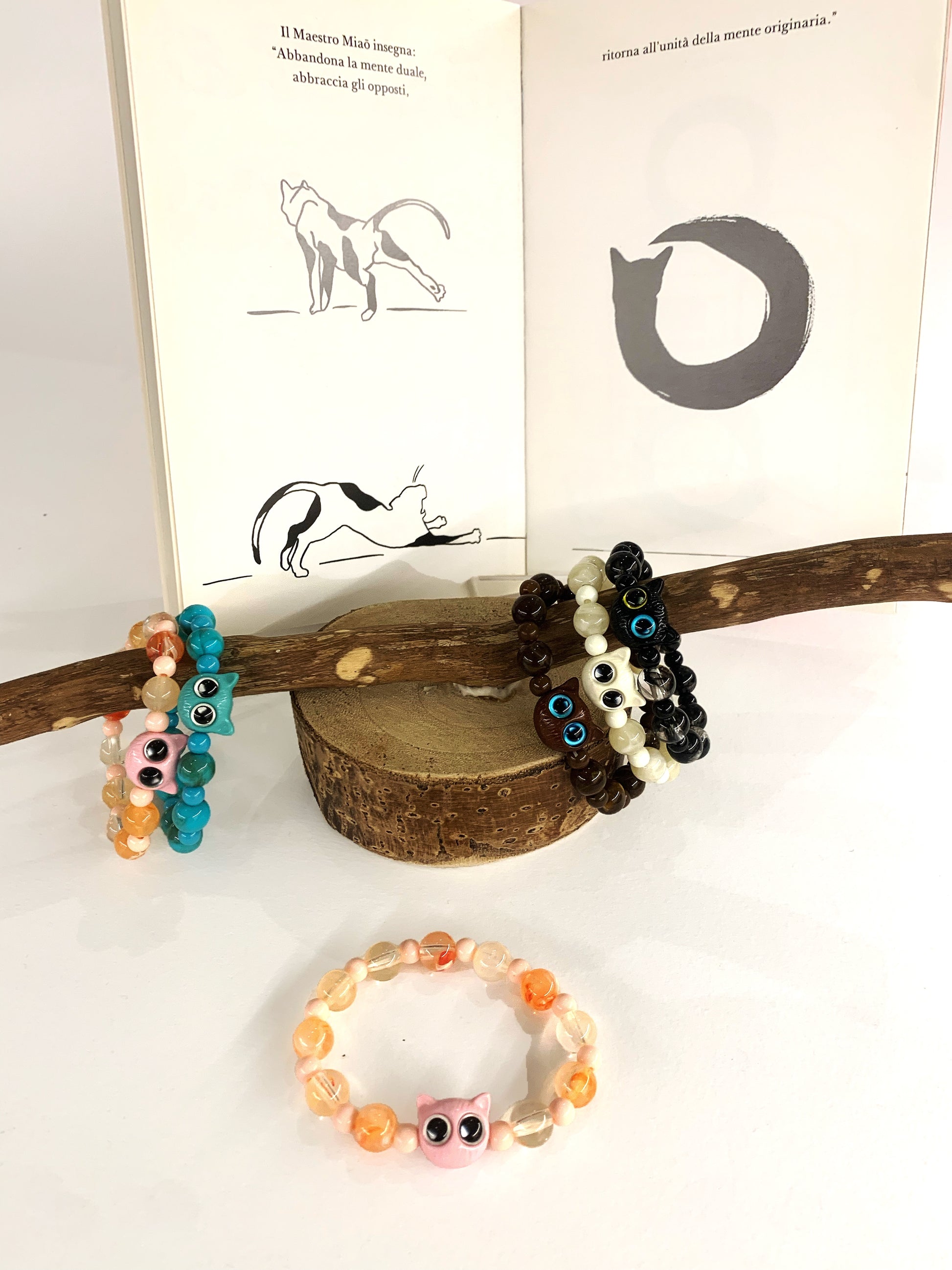 KITTEN Rainbow ~ bracciale con gattino e perle in resina, elasticizzato