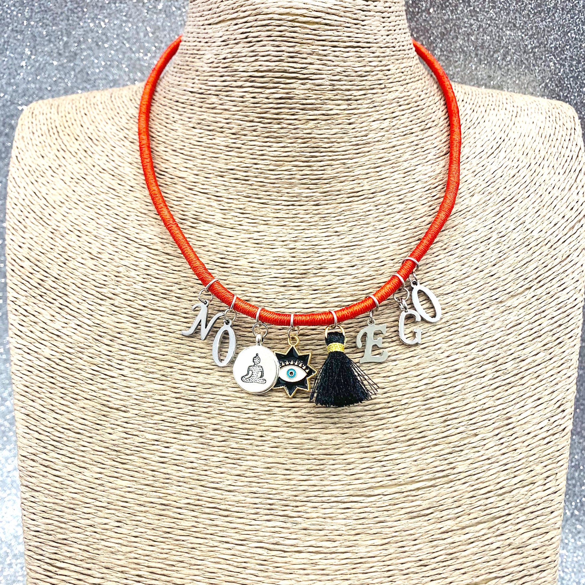 NO EGO ~Pendenti su cordino rosso originale tibetano con nappina