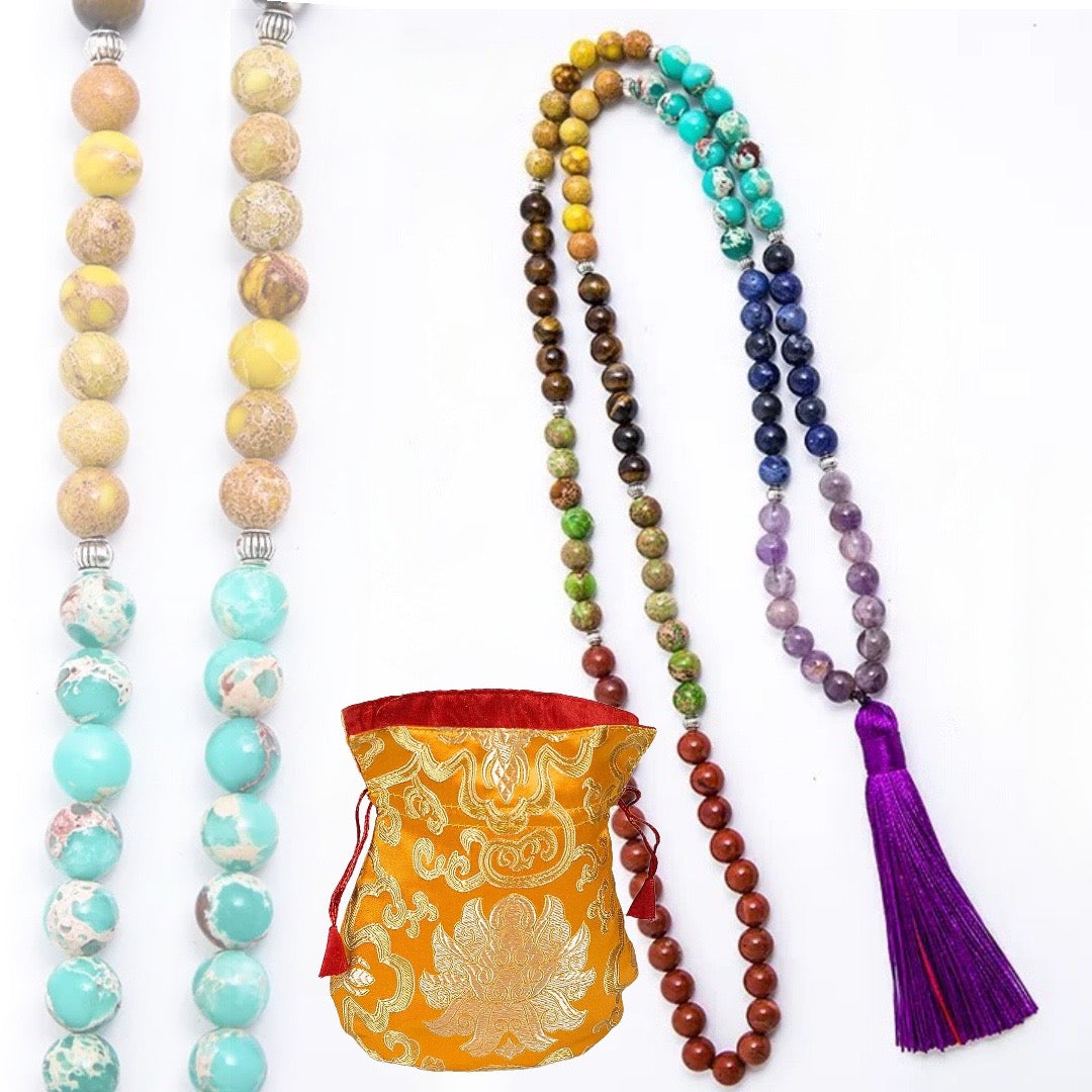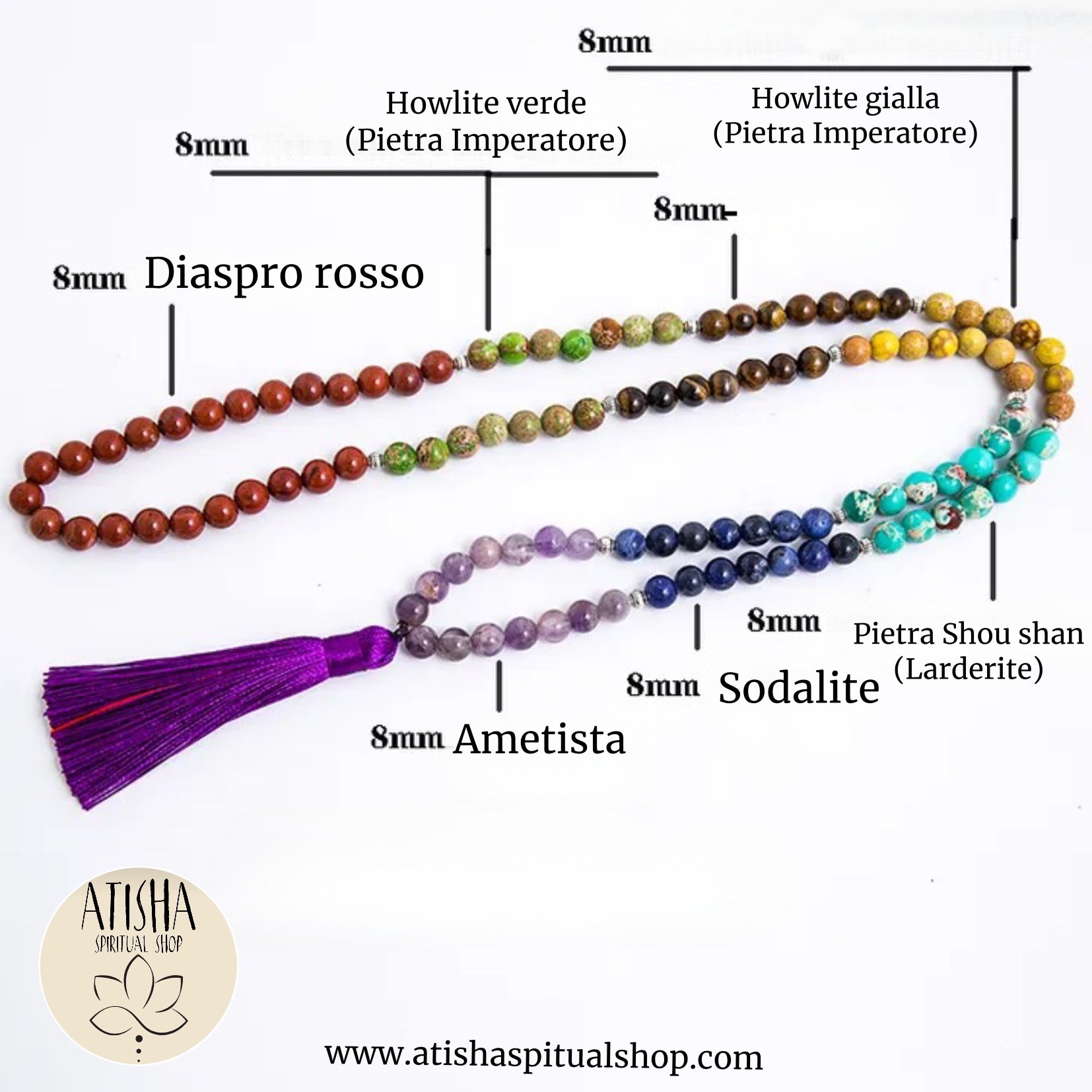 REIHO ~ Japamala 108 grani ~ pietre dure naturali colori 7 Chakra