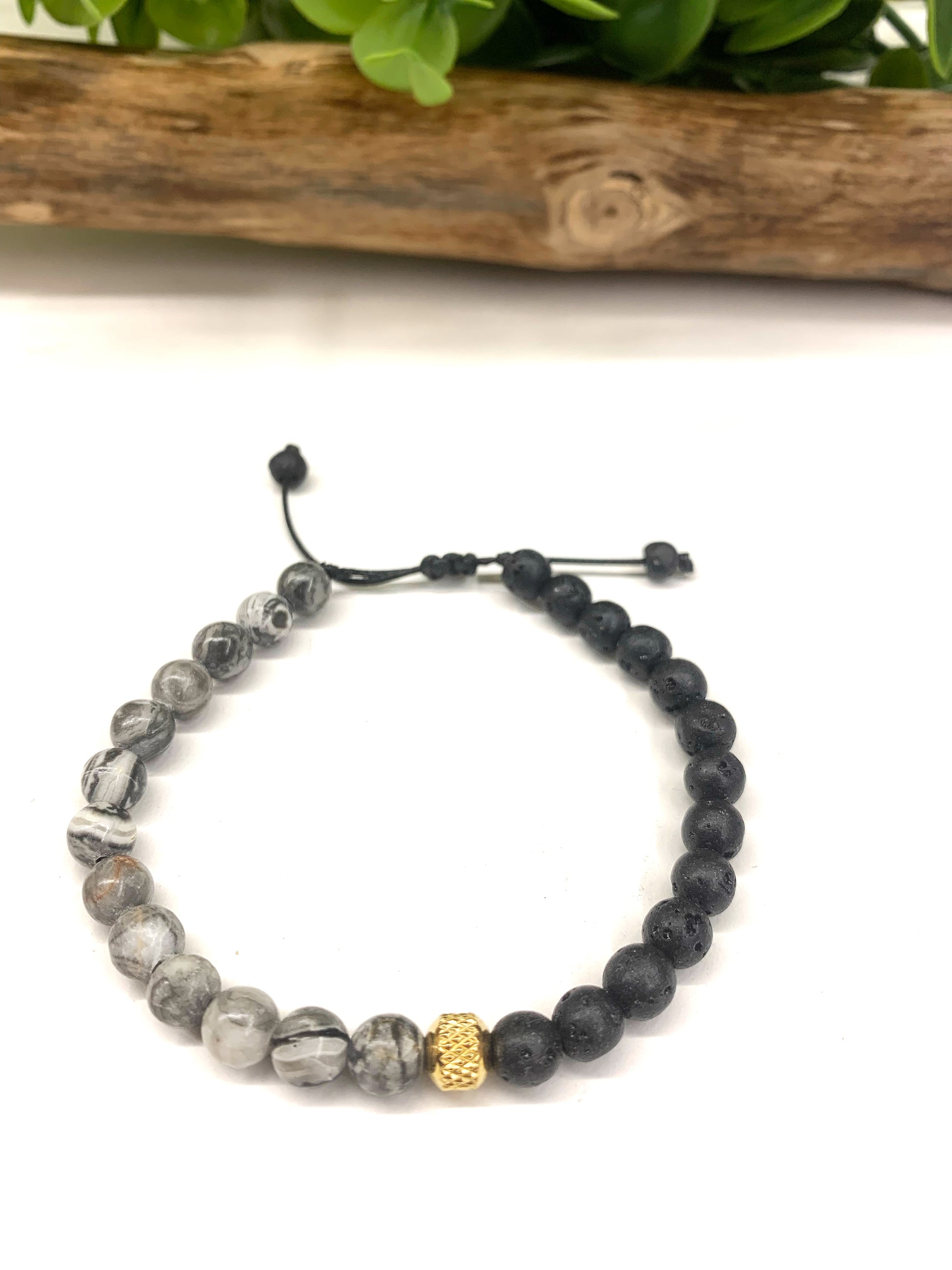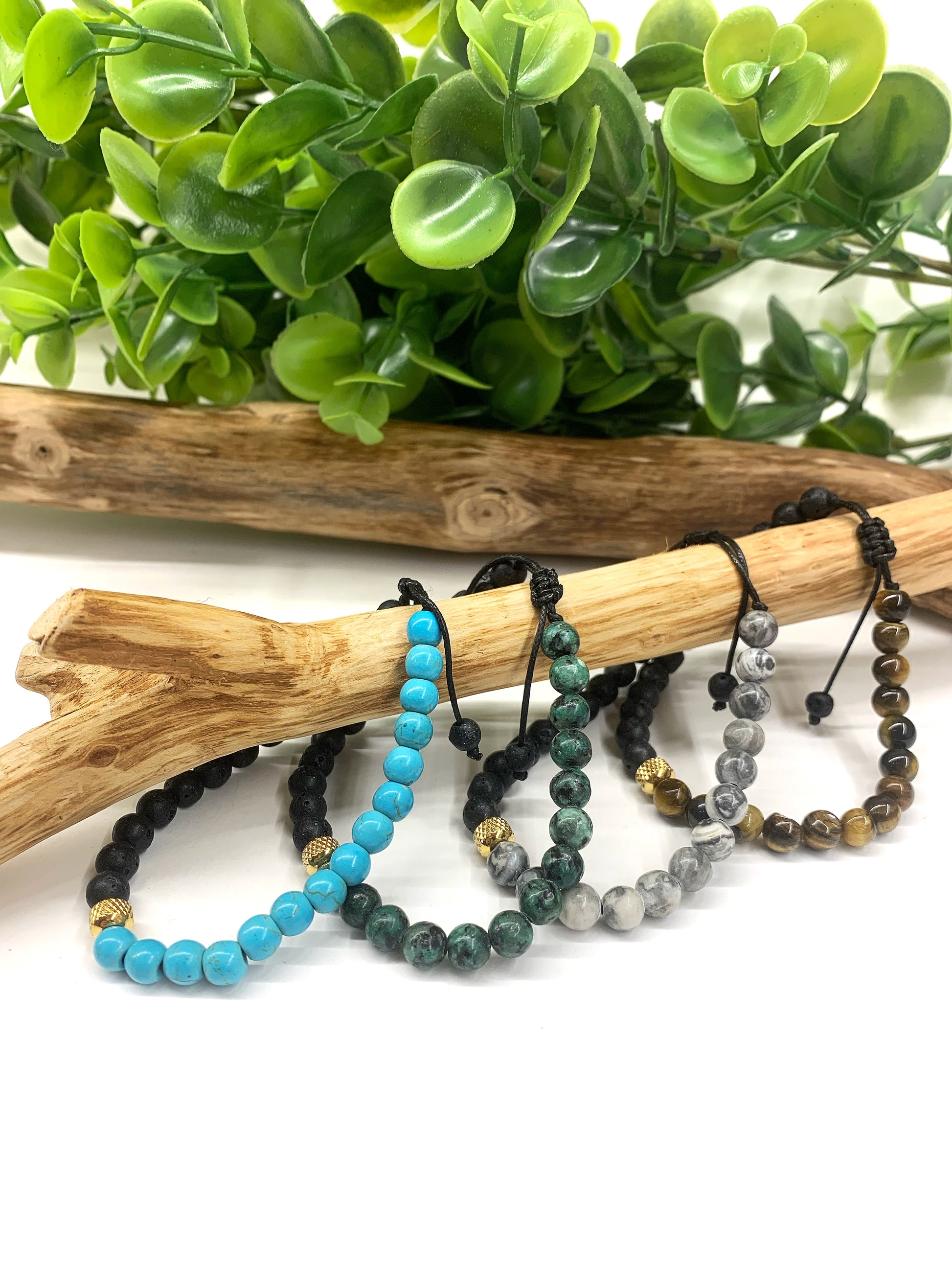 Bracciale bicolore, ogni bracciale ha una parte in pietra l'avoca e una in pietre dure naturali.