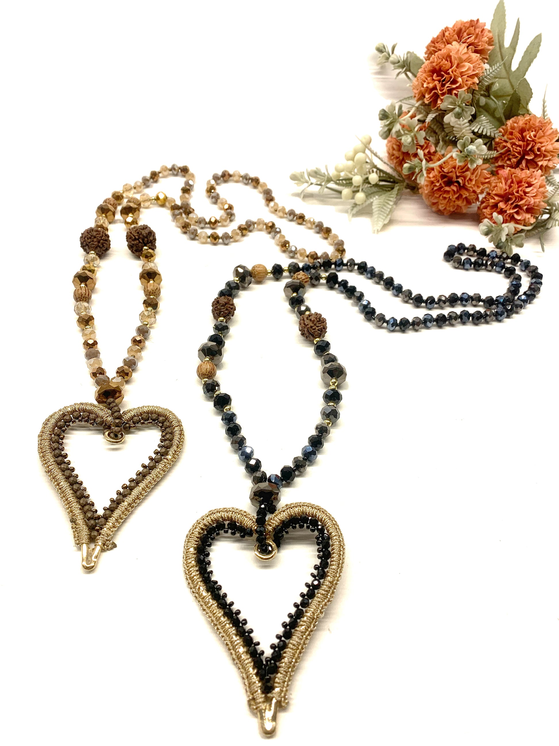 La caratteristica di questa collana e' il cuore pendente, rifinito in oro macramé, fatto a mano.
