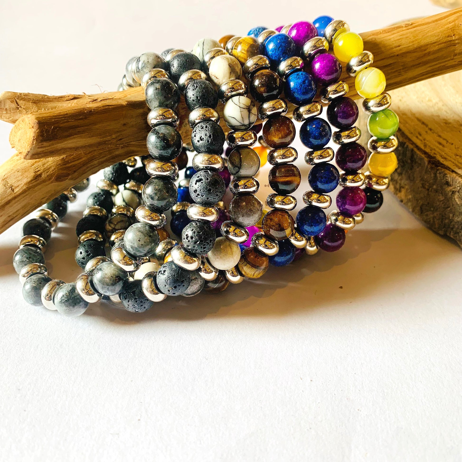 SHAMADI BRACCIALE ~ In pietra dura naturale e anelline acciaio inossidabile ~