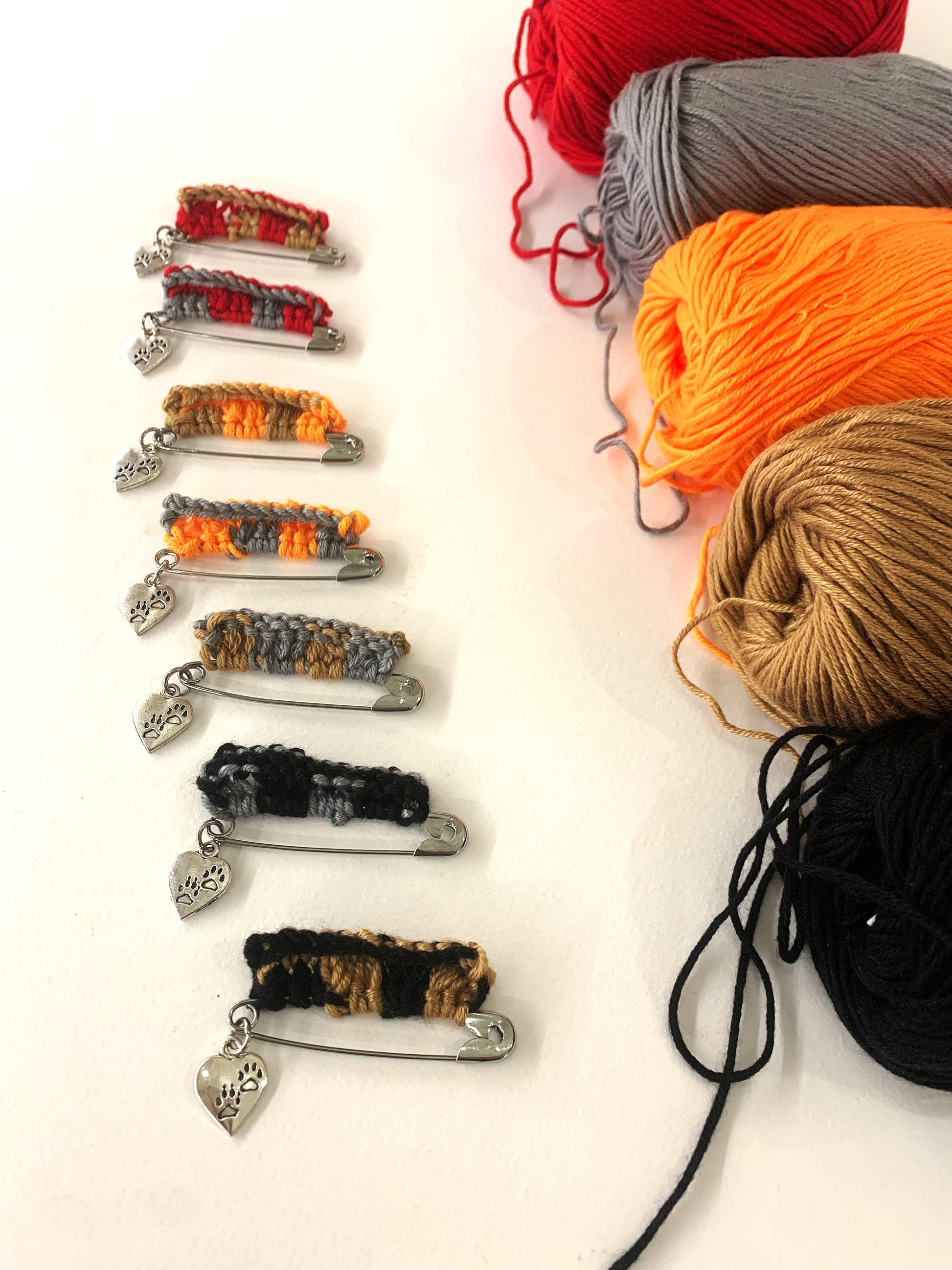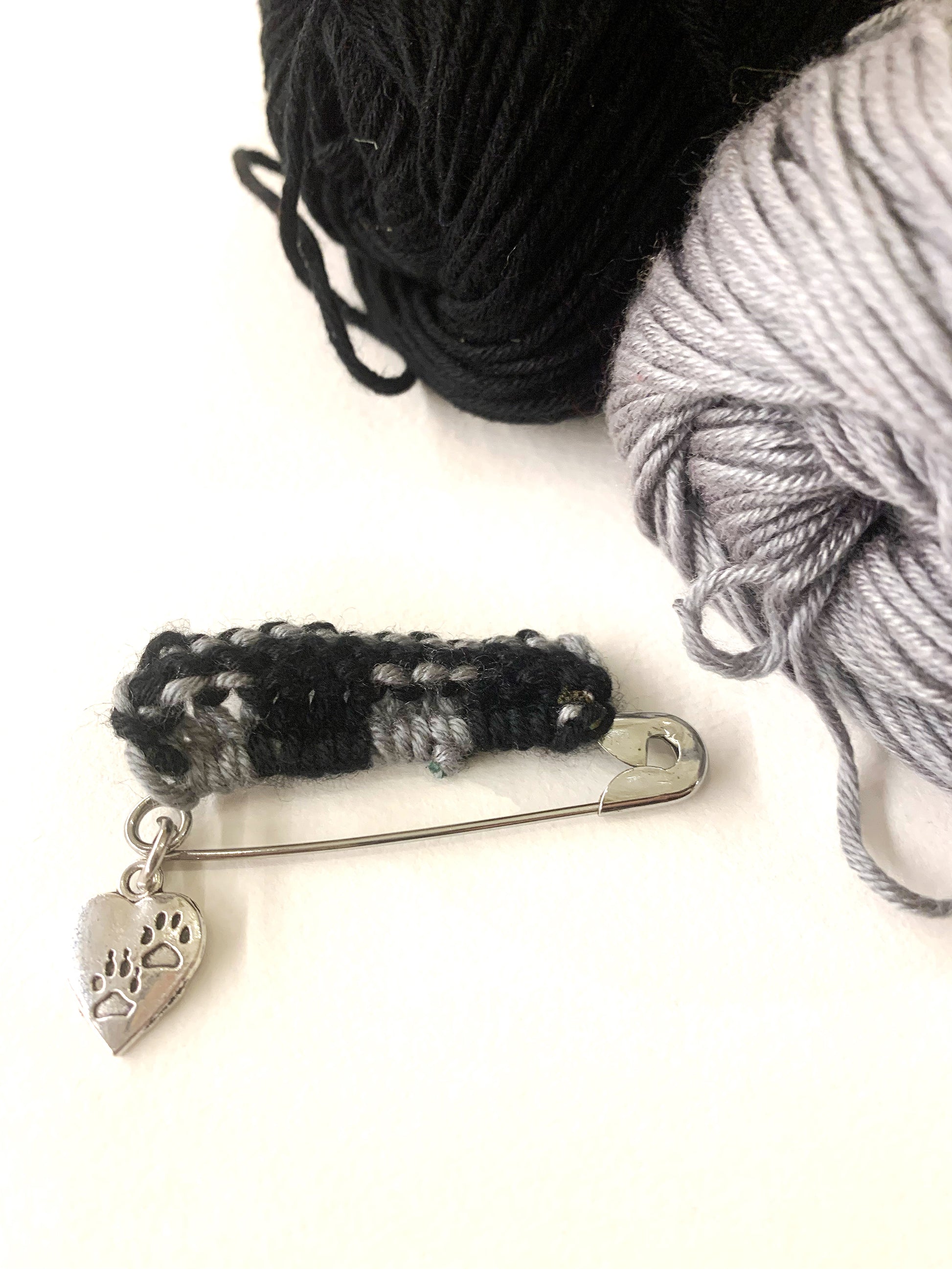 TRICOT PIN - spilla in metallo con dettaglio tricot e ciondolo cuoricino ~ Pezzi unici