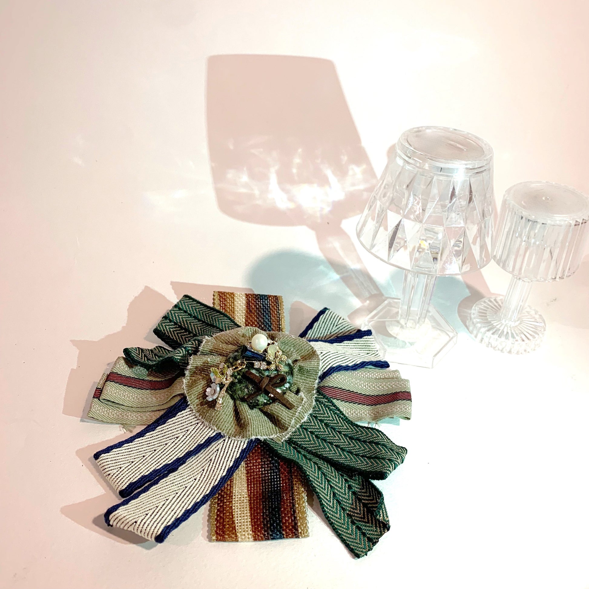 VINTAGE BROOCH - spilla in tessuto vintage con passamaneria, bottoni, gioielli. Fatte a mano. Pezzi unici